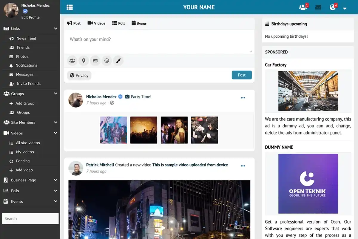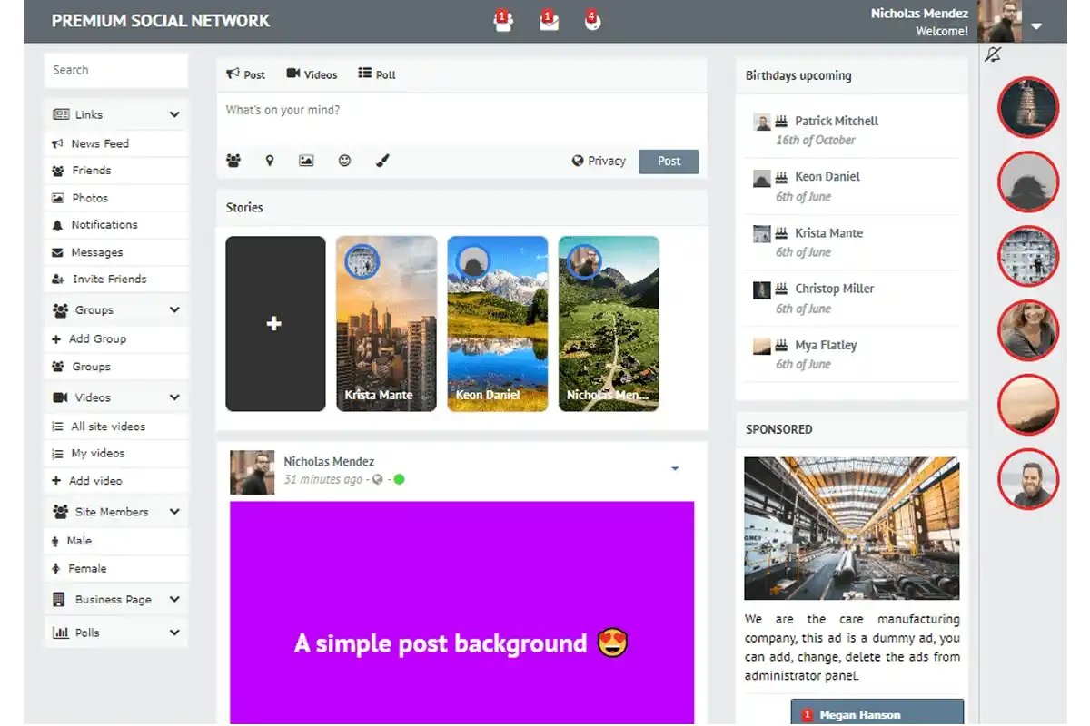 There are many features that makes your social network website perfect!
